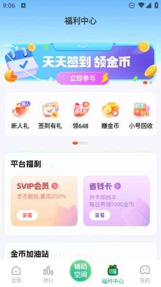 2、 登录成功之后我们来到软件的首页,点击下方的辅助空间,如上图所示,妥妥的!。