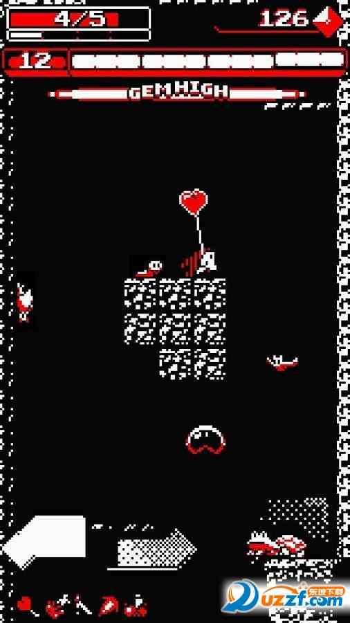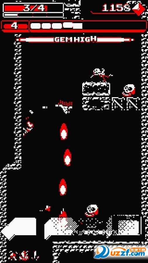游戏设定玩家在一口深井内不断下坠, 在下降过程中将遭遇到青蛙、可爱怪兽以及其他怪异的像素生物的袭击。脚上的一对拉风的“鞋枪”将成为你最得力的武器, 不仅可以让玩家在空中短暂悬停,避开各种陷阱;而且它本身也是一款十分厉害的武器,发射子弹神马的都是小 CASE 啦,强大的爆破力更是令人刮目相看,产生犹如弹幕满屏炸开花的酷炫效果。还有啊,游戏还为“枪鞋”提供了多种火力选择,除了标配的弹药之外还可喷射火焰,或作机关枪之用。