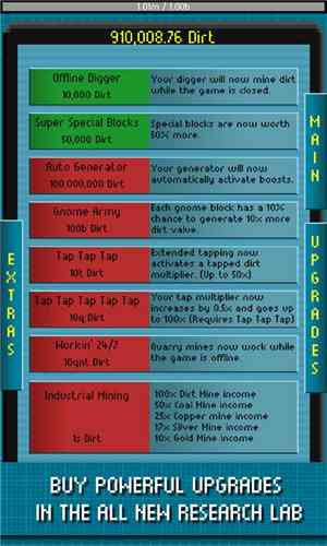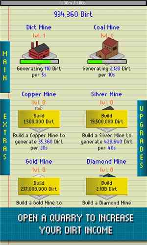 掘地公司是一款有着像素风格的休闲游戏。游戏主要是挖掘各种矿物质, 一边你可以调整挖掘时间,本作是个点点点的游戏,万事开头难,攒够提升单次挖掘数后游戏才算真正开始,一旦开启实验室里的离线挖掘后就可以用调时间大法,说到底。。