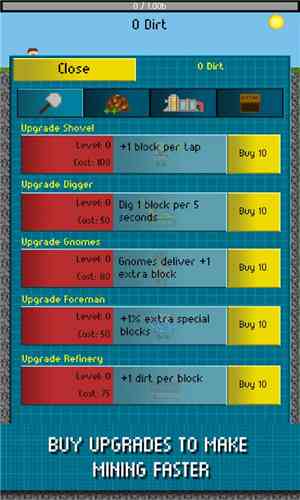 掘地公司是一款像素休闲游戏, 游戏目的是掘地三尺寻找各种矿物质, 拯救一下。 不停地点击屏幕,攒够挖掘次数后宝藏就会出来了。