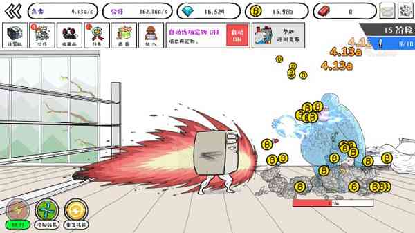 4、游戏中的战斗场景可以通过左下角的充电按钮进行快速战斗,基本上...。