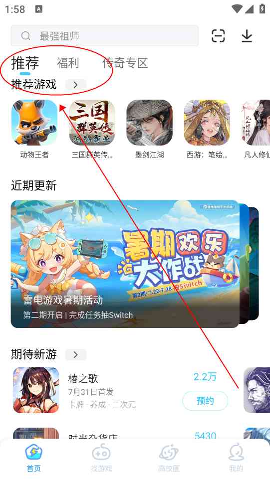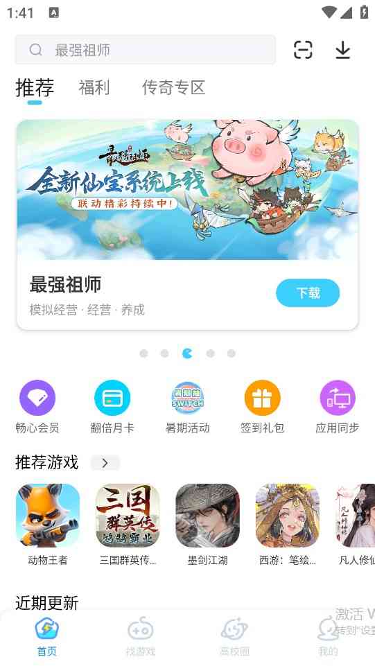1、 进入软件主页,在首页中可以看到大量热门游戏推荐。