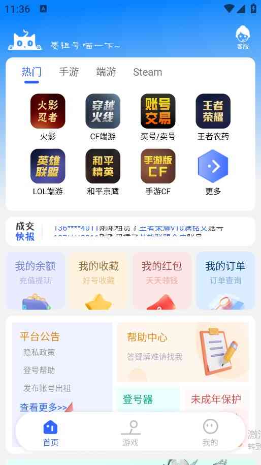 租号猫2026最新版是一款比较好用的手游辅助工具, 在租号猫2024最新版APP上为广大玩家用户提供了众多高质量,高等级的游戏账号,所以用户们可以通过该应用轻松租用到适合自己需求的账号资源哦, 共勉。 进而带给自己更为精彩的游戏体验,接下来平台还能为大家提供众多折扣福利哦,当然最重要的平安问题大家也无需过分担心,主要原因是一切也有保障。