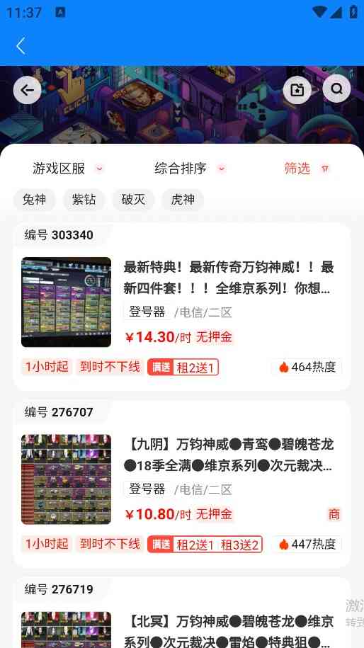 以及VIP会员专属的折扣价格。具体的价格会根据账号的质量、游戏类型和租赁时长等因素而有所不同。
