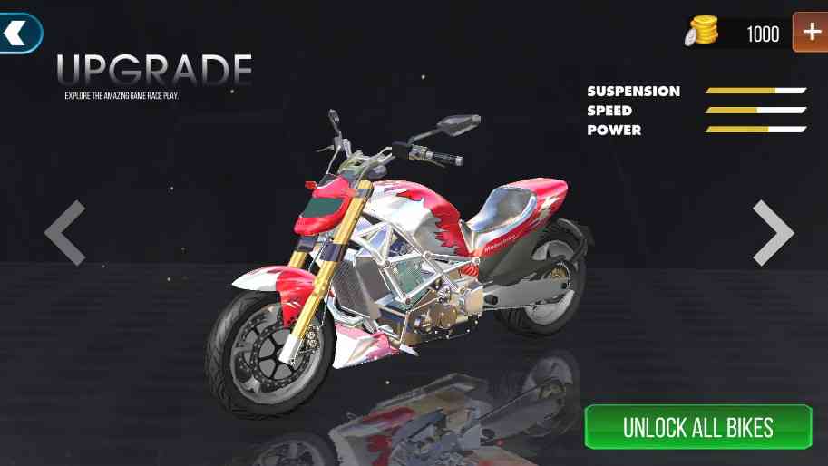 金币收集系统:通过收集金币, 玩家可以解锁更多的摩托车和道具, 泰酷辣! 这些新解锁的元素可能会提供速度上的优势。