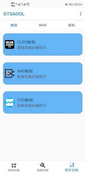 3、 目前包含以下功能:cleo管理、mod管理、内置cleo、内置拓展功能、车辆/人物模等,太硬核了。!