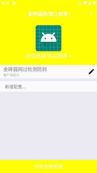 4、 如下图所示,上面的用户自定义就是用户自己设置好的配置,之后我们可以点击下方的开始金砖国弱网运行啦。