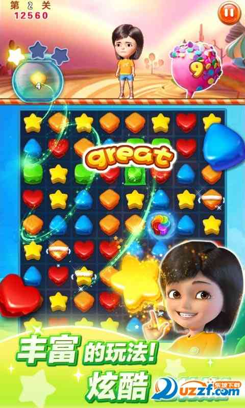 糖果世界大冒险玩转糖果世界大战!赶快来进入冒险的惊奇旅程,挑战三星星高分吧!这里有绚丽多彩的糖果, 不夸张地说... 超多好玩的关卡,考你智力,让你越玩越上瘾,越玩越精彩,让小雨带你进入糖果世界开心冒险乐不停!