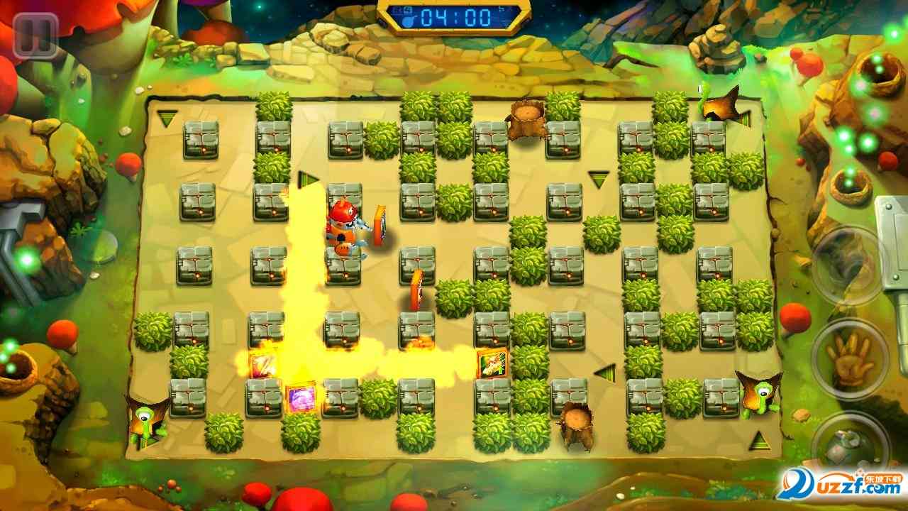 这款作品轻松幽默, 玩法简单易上手,玩家只需要移动人物、放置炸弹,然后就等待爆炸的精彩瞬间就可以了。不过需要注意的是除了要计算好爆炸的时间外还需要考虑到怪物的移动轨迹, 又爱又恨。 当然还要避免炸到自己。还有啊通过收集各种升级卡片,玩家还可以投掷炸弹或使用定时炸弹。