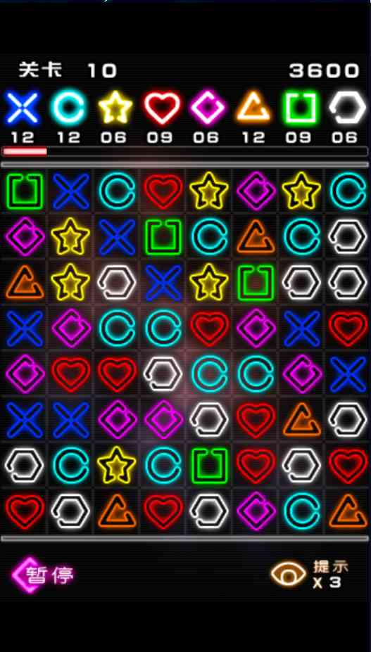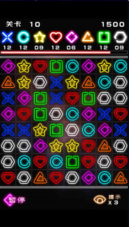 是一个幻彩图形调换的益智游戏。通过触屏,你可以调换不同图形位置, 性价比超高。 达到三个或以上相同图形连成一线为之得分。