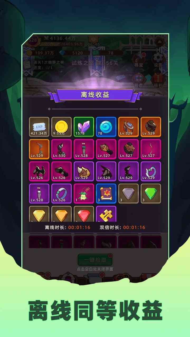 离线收益:即使离线挂机,也能享受在线挂机一样的收益。