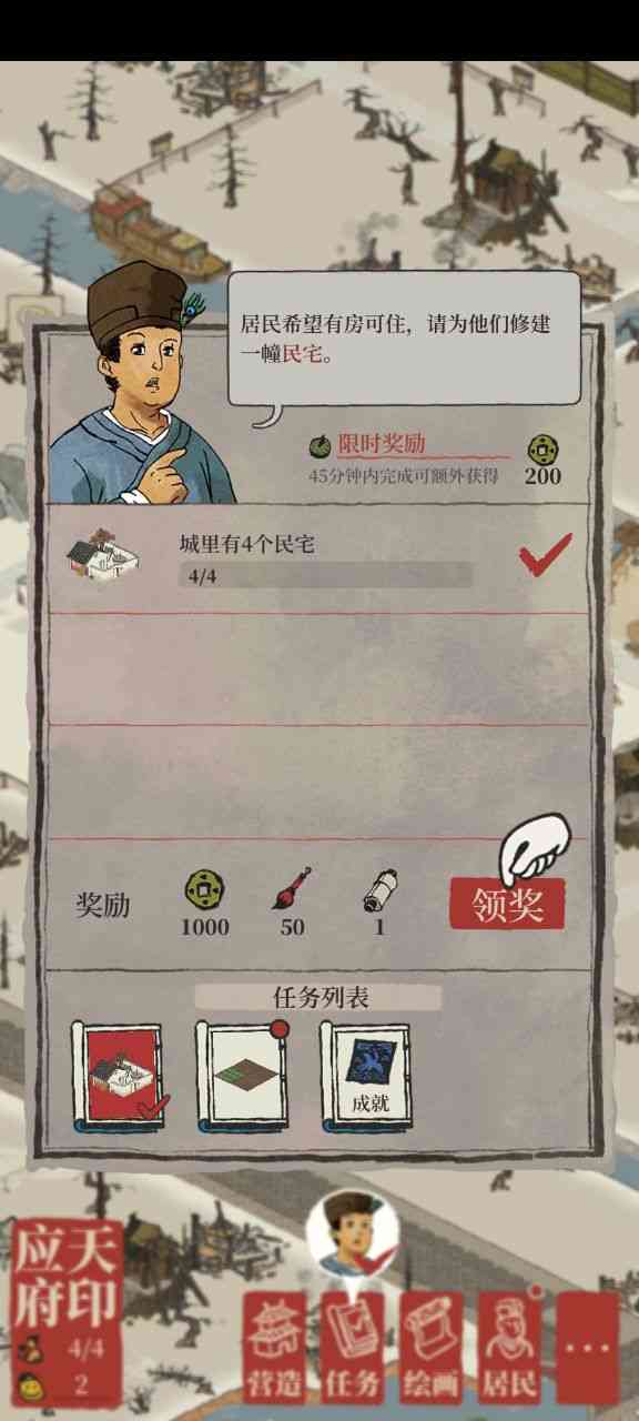 对于这样的“精英”居民,玩家自然是希望能够多多益善。原因也不难理解, 作为一款手机游戏,《江南百景图》中的新建建筑乃至资源的生产,都不像传统的模拟经营类PC游戏那样可以一蹴而就,而是需要数十秒乃至十几分钟不等的时间。玩家要是选择指派特殊属性的居民负责工作,这一等待的时间就能大为缩短。而且,这些特殊居民所拥有的属性,本身就是可以提升的。比如阅读《水浒》、《三国志》这样的名著,就可以增加人物的经验值。