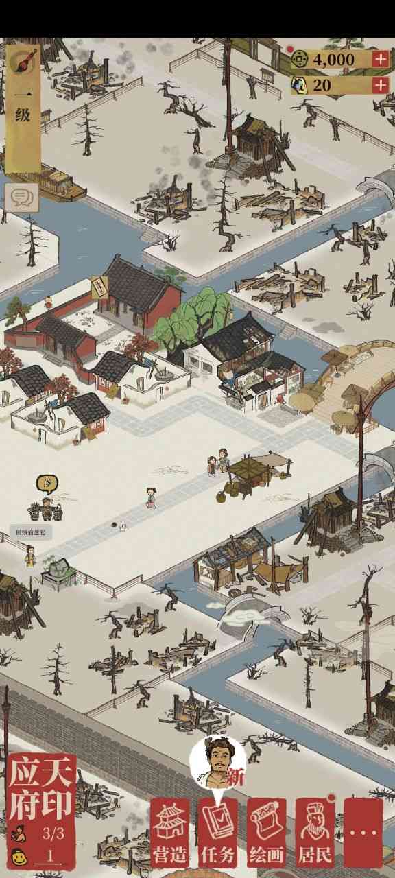 “春来江水绿如蓝,能不忆江南?”在大众印象里江南是美丽富庶的水乡。明朝最早的首都正是地处江南的应天府,而游戏界面中的“属性”按钮,干脆就叫做“应天府印”。在游戏一开始, 玩家就需要扮演与唐伯虎齐名的文徵明,化身城市的设计师,描绘蓝图、兴造建筑、规划布局,经营赚钱,招徕人口……,踩雷了。