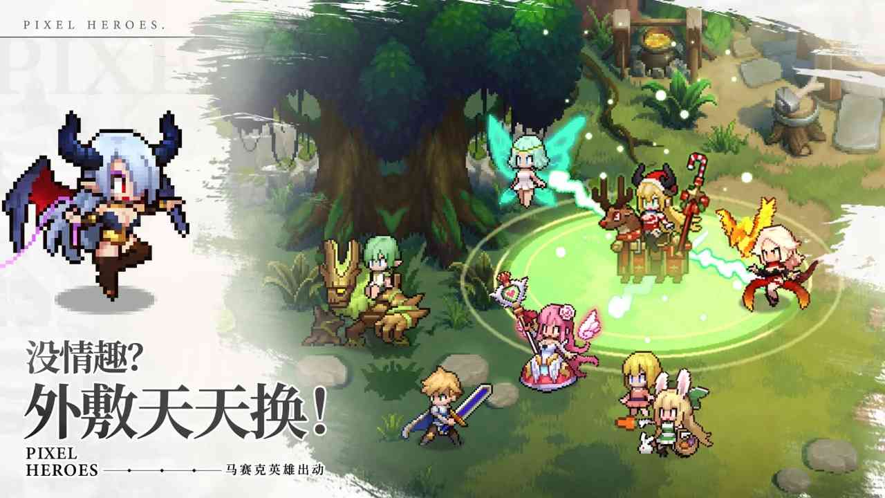 游戏整体采用了复古像素风,在当今放置类游戏中别具一格,体验酣畅淋漓的战斗,一秒梦回童年!在大部分像素画面之外每个角色均有二次元画风的精致立绘。 歇了吧... 在剧情对话中,立绘会以Live2D的形式呈现出,精美画面与像素画风相结合,更显视觉冲击力与吸引力。