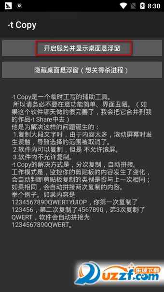 1、 打开软件,运行它,点开启服务并显示桌面悬浮窗。