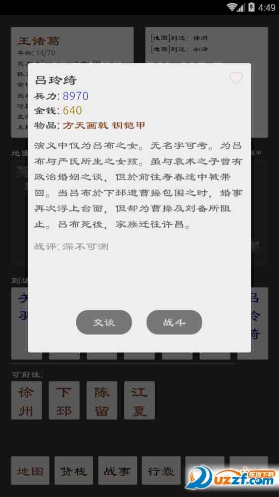 三国英雄坛是一款以三国为题材背景的文字冒险游戏。玩家将在游戏中到三国时期开始自己的一生。 啥玩意儿? 你可以遇到各种熟悉的人物,可以和他们进行战斗,一边也能收入麾下共创大业!