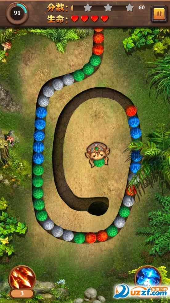 在《祖玛大冒险》中,你的任务就是阻止那些五彩斑斓的珠子落入洞中。游戏的主角是一只可爱的蛤蟆,它的嘴里会吐出各种颜色的弹珠。你需要巧妙地操控蛤蟆,用相同颜色的弹珠进行碰撞,从而消除它们,阻止它们继续前进,打脸。。