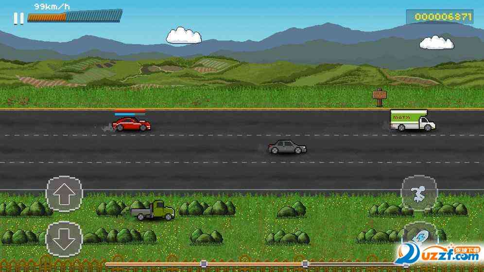 加油! 猎车地下车手是一款像素风格的赛车游戏, 游戏画面精简,让人回想到了以前玩的赛车小游戏,游戏模式采用横向赛车竞速玩法,玩家需要约过各种障碍物,到达终点!