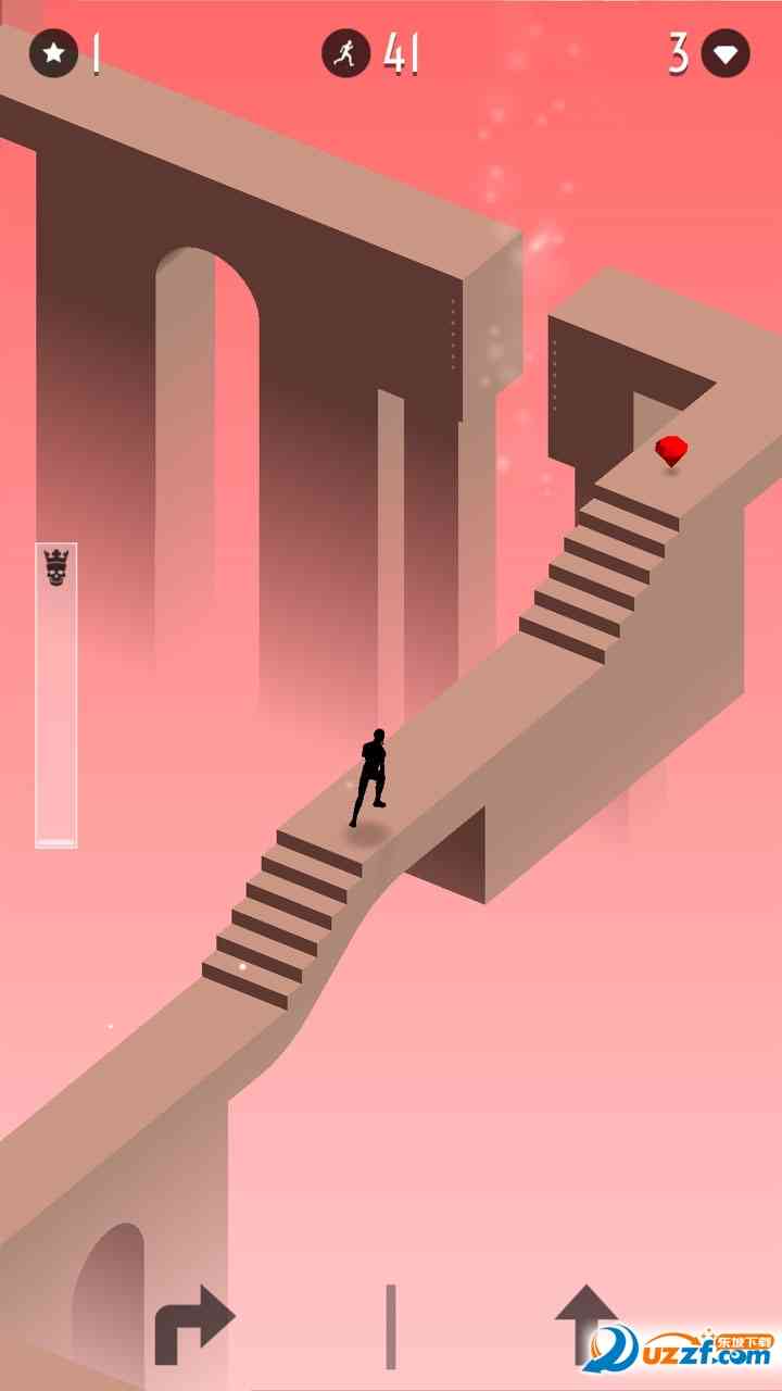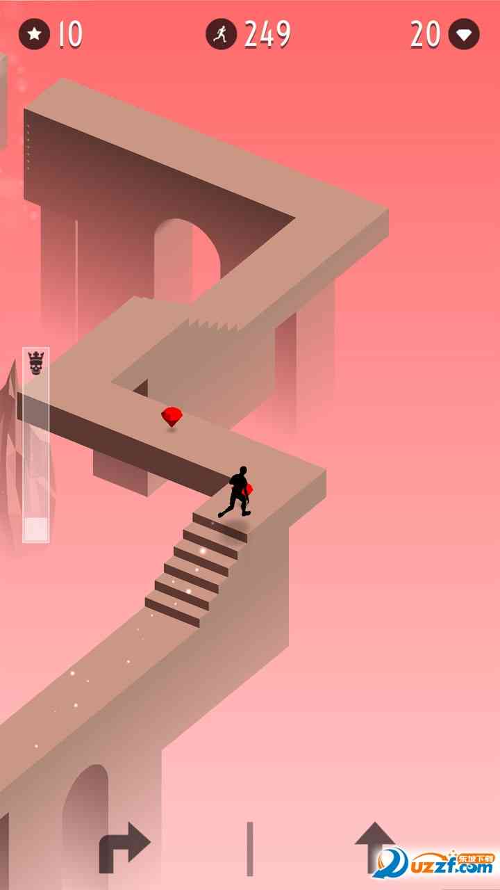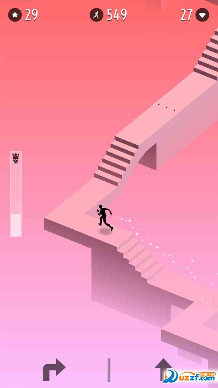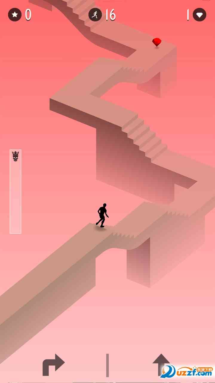 游戏中, 玩家控制角色转向、跳跃即可。越到后边障碍越多,后面还会有怪物BOSS等着你哟,太暖了。。