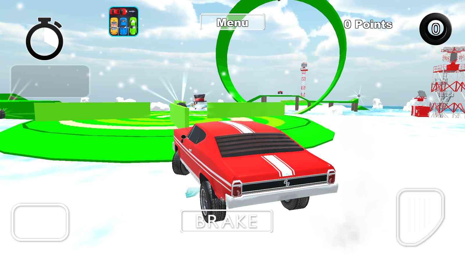 雪至尊汽车特技赛 Snow Car Race & Stunts Extreme 是一款应景的雪地特技赛车游戏, 踩个点。 快来在雪地冰面上展现你的身姿吧!