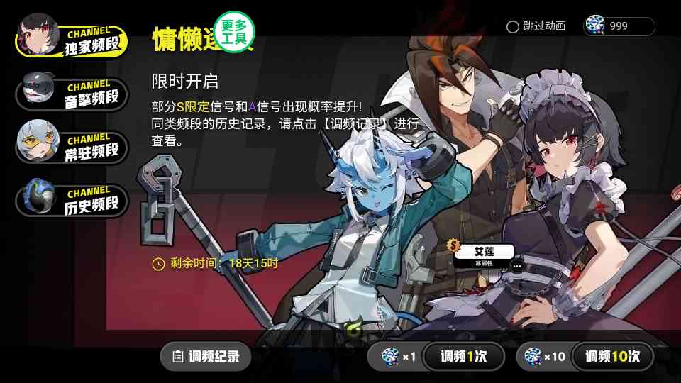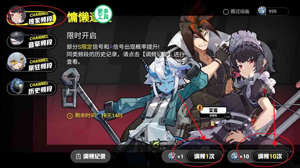 3、选择右下角的调频,一次就是抽一个,10次就是10连抽;,公正地讲...