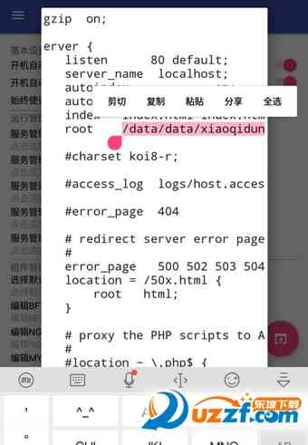 欧了! 默认的网页根路径是如果有需要修改默认网页根路径,请在/data/data/xiaoqidun.anmpp/files/root/android.nginx/conf/nginx.conf,中修改: