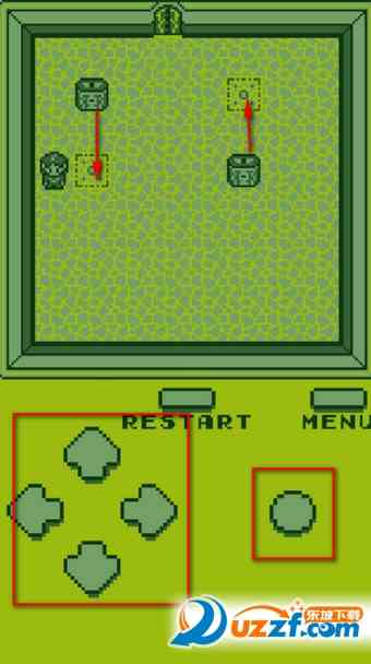 当位置对好后点下方的圆球就可以交换了。 一定要将正方形的物体放到指定的方块位置。 只有所有方块物体都放对了位置才可以打开门进入下一关。 操作主要是按下方的四个箭头和圆球。 二、游戏特色 1. 42个关卡,挑战你的智慧极限。 2. Gameboy风格图形,带你回忆童年。 3. 40多个房间供选择,多样化的游戏体验。