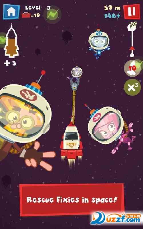 游戏共有100级的太空探索, 不断升级你的火箭以增加火箭的飞行速度、机动性和距离等。一边还要小心无处不在的太空垃圾和陨石的威胁,与君共勉。。
