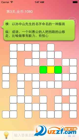 如果你喜欢填字游戏,那么这款《中文填字游戏精选app》绝对不容错过。快来下载,让我们一起在文字的世界里畅游,享受填字的乐趣吧!