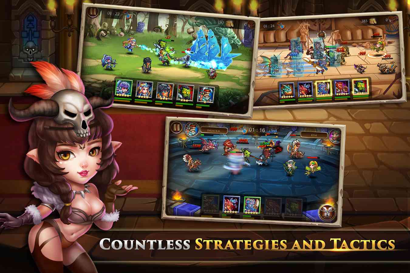 收集不同种类的稀有英雄,从强力的战士和熟练的远程战斗人员的魔术大师,到位。。