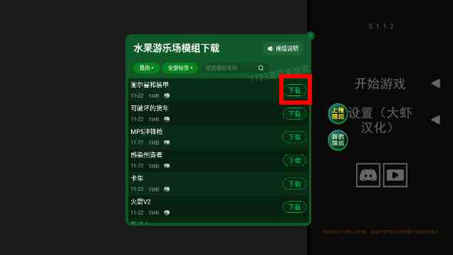 3、 下载完模组进入游戏地图,左上角列表左滑,点击再说说一个栏目图标即可看到下载后的模组