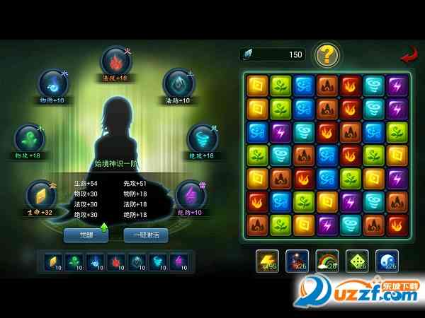操作一波... 在该区域, 按住某个“元素”图标,进行拖动,如果有3个以上的图标连成一条直线,即可消除,每移动一次需要消耗“灵力”数值,该数值在7X7格子区域上方显示。