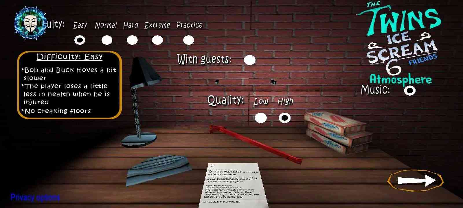 双胞胎冰淇淋6是一款暗黑风格的恐怖冒险手游,在游戏中玩家将会成为一名小偷,拥有高超的盗窃技巧,你需要潜入一所建筑物,并在建筑物中找到指定的贵重物品并进行盗窃,但是建筑物的主人非常恐怖,感兴趣的小伙伴快来uzzf吧!