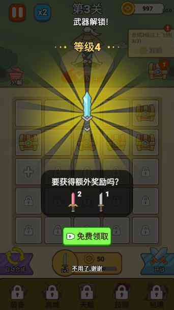 1、 击败敌人可以获得金币,完成任务也能获得金币,这些金币可以用来解锁低等级的剑。