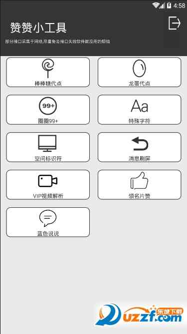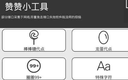 摆烂... 赞赞小工具app是一款专门点赞的手机小工具, 包括qq,qq空间,快手,抖音等等都是支持的,还有球球大作战的棒棒糖,龙蛋领取,各种vip视频解析等等功能!