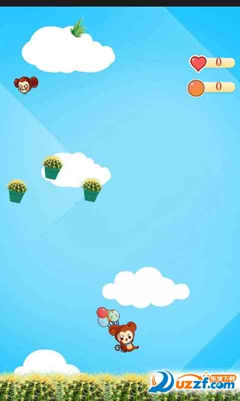 小猴子乘着气球飞上天去, 一大堆的仙人掌从天而降,可千万不能让它碰上仙人掌。收集道具和水果,挑战全国快手党!游戏中,小猴子不仅仅要躲避仙人掌,还可以吃到一些帮助自己的道具。一起跟着小猴子的飞行轨迹获得更高的分数吧,我血槽空了。!