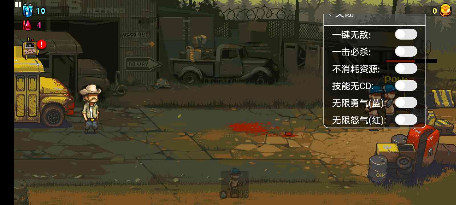 绝了... 8. 当士兵遇到大群的僵尸时 会被「吓得发蓝」,攻击速度和攻击力都会下降,这时候就可以用增益工具中的橙色瓶子给士兵「壮胆」。
