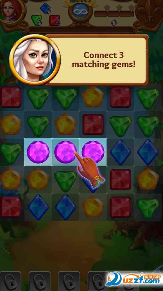 你需要用手指滑动来连接同样颜色的宝石并且消除它们
