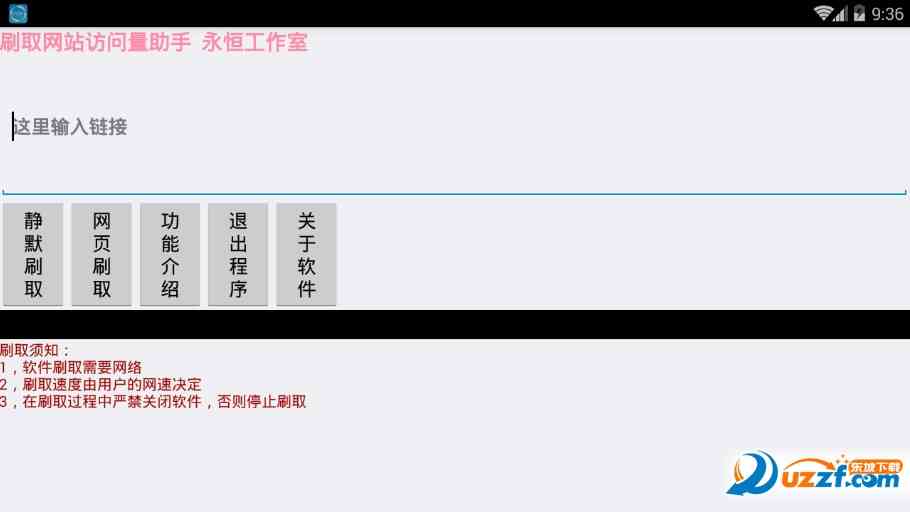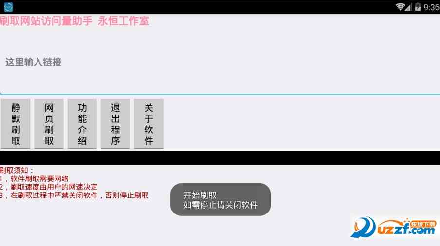 3. 在刷取的过程中严禁关闭软件, 否则停止刷取:为了保证刷量的稳定性,请在刷量过程中保持软件运行,以免影响效果。 刷访问量助手app下载是一款非常实用的工具,无论是想要提升博客、网站的人气,还是想要在qq空间吸引更多关注,它都能帮你轻松实现。赶快下载试试吧,让你的访问量飞速飙升,成为网络红人不是梦,摆烂...!