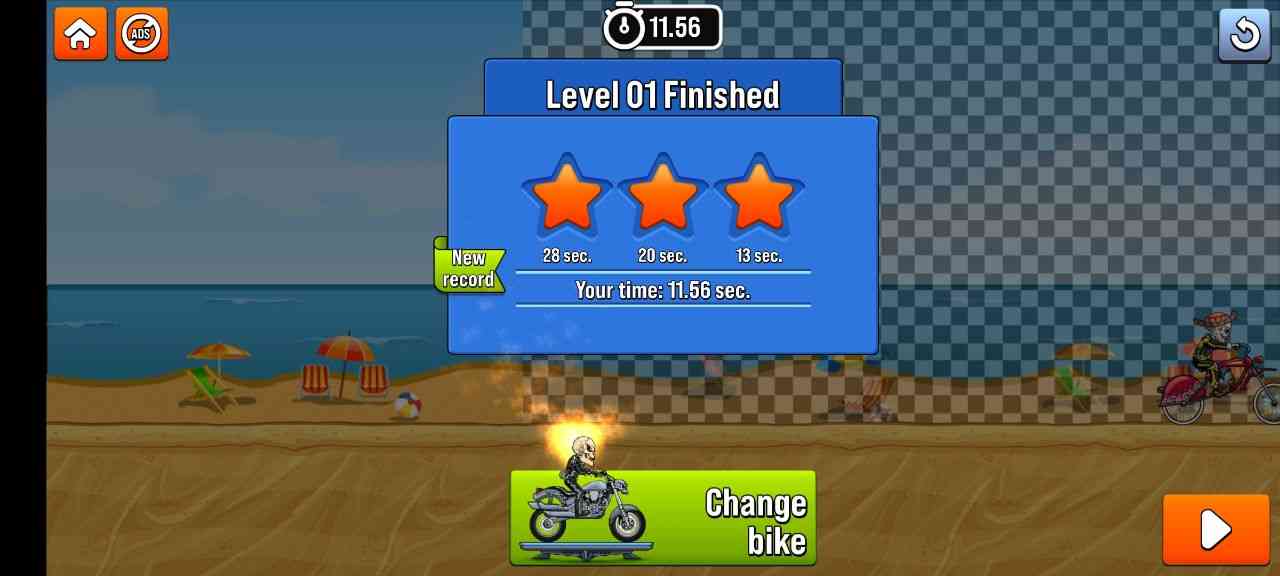 MotoX3M自行车比赛游戏的控制简单直观,让所有年龄段的玩家都能轻松享受游戏乐趣。玩家使用两个屏幕上的按钮来控制自行车的运动,用于加速和制动,再说一个两个用于控制自行车的倾斜度。控制灵敏而准确,让玩家能够轻松地表演特技并越过障碍物。