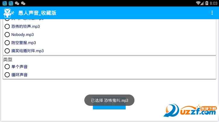 愚人声音是一款支持多种声音选择的恶搞娱乐软件,用户可以设置不同的音乐来进行恶搞身边的朋友。你可以假装借朋友的手机进行设置声音,然后设置好恐怖恶搞声音出现的时间。出其不意,你的朋友肯定会被吓到。