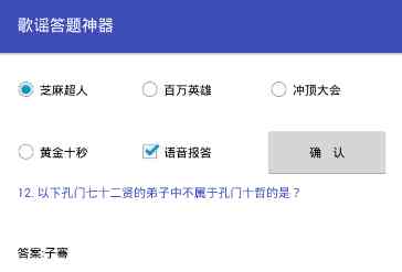 歌谣答题助手是一款全新好用的知识答题软件助手, 利用歌谣答题助手,你可以实时获取最新答案,可以快速精准的进行答题赢取奖金!