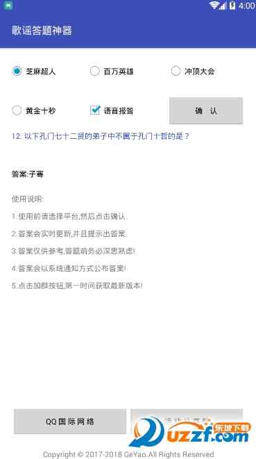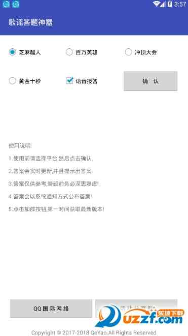 你没事吧? 1.使用前请选择平台, 然后点击确认,确保你使用的答题软件与歌谣答题助手兼容。