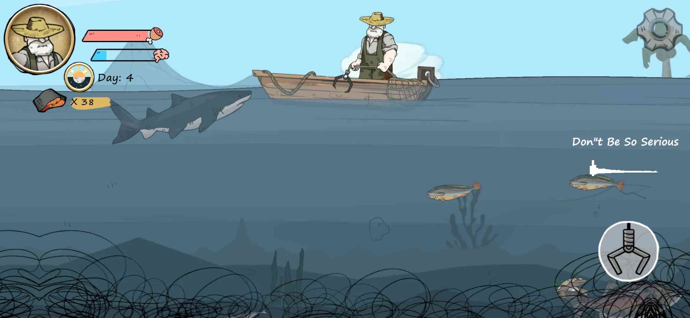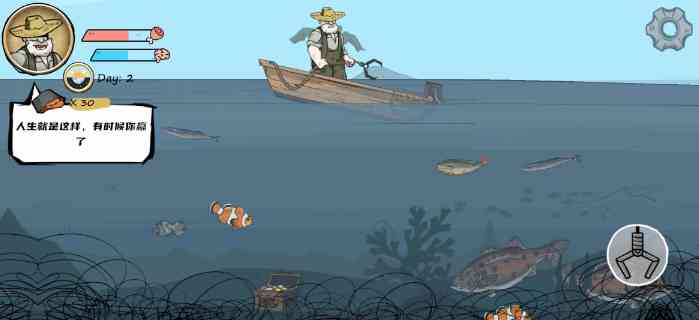 1、 游戏的基础玩法借鉴了《黄金矿工》,玩家需要控制老人在船上移动, 引起舒适。 保持船的平衡,用鱼钩捕鱼。