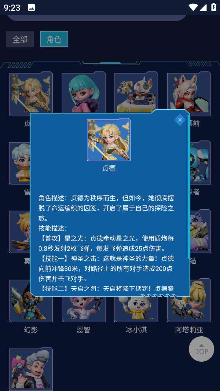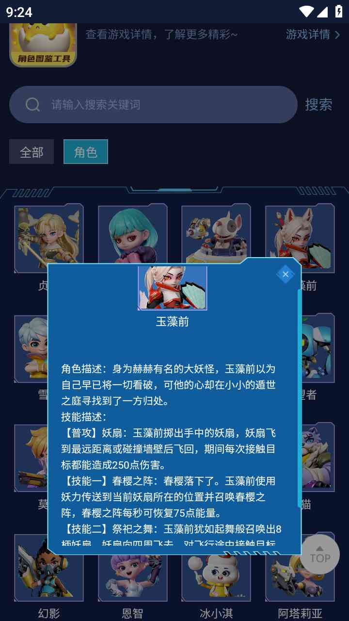 2、查看详细介绍、属性、技能等信息,并欣赏角色的图标和图案,一句话。。
