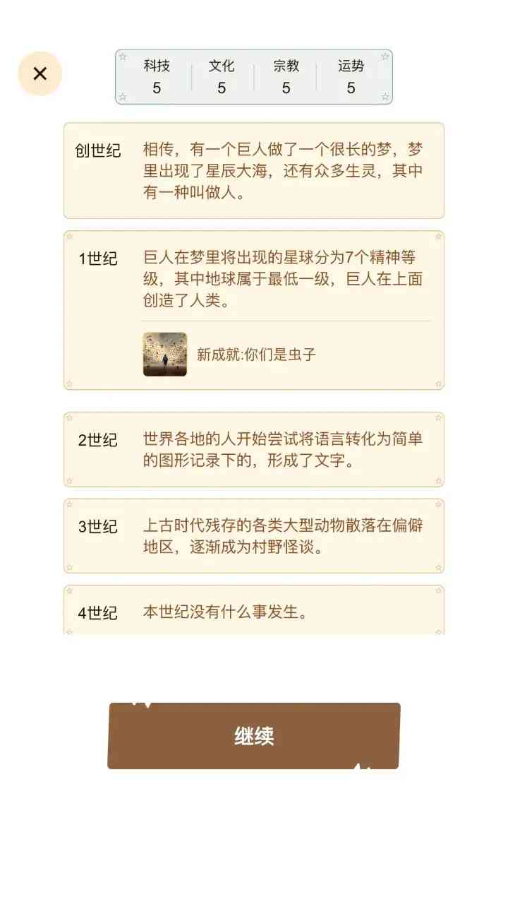 3、三分一局,脑洞全开通过模拟,人生可以重开,文明可以重启。 未来可期。 不到三分钟即可操控一场文明之旅。