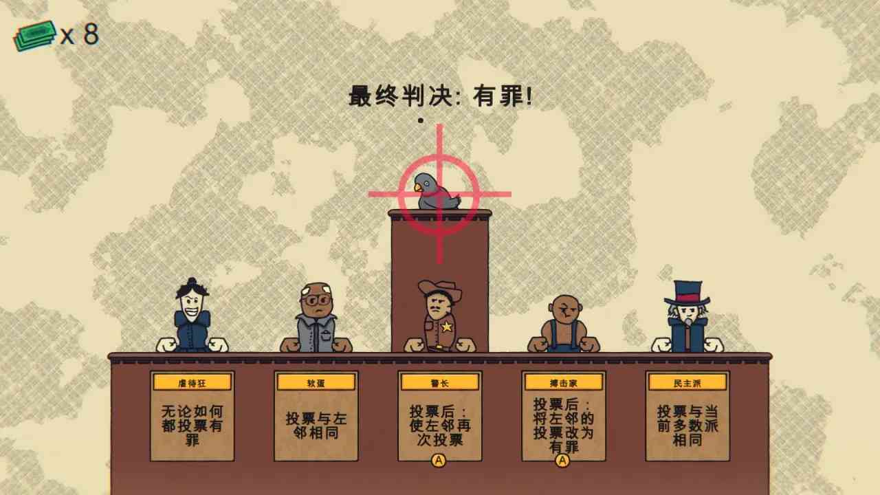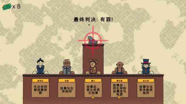我给跪了。 游戏玩法简单而有趣。先说说你需要通过购买证人来左右到头来的断决。在游戏中,米奇背靠西半球最强法务部,你将面临重重挑战。 第一轮模拟断案:你可以花钱购买证人。 开始时你只有三块钱,需要一张无罪选票。三个人,双胞胎和贵族,都能投无罪票。 前期建议选择贵族小姐姐,主要原因是她每次能多赚一块钱。 赚得越多,可以请更多的证人,表示无辜的意思。 汪汪大法官主持庭审,只需一张无辜票。 投票后资金增加,确保你有足够的资金来对抗对面的法务部。 陪审法庭攻略 在游戏中,第二轮模拟断案同样充满挑战。上一轮可以赚到四块钱,这样你就有六块钱了。 这一轮会有什么样的阵容来为你作证,需要关注。 购买证人时可以考虑性价比高的双胞胎兄弟和山姆大叔。 直接开庭,看法官宣判。再说说一轮,见风使舵,投无辜票,轻松取胜。 陪审法庭好玩吗 1. 厌世者是唯一一个没有标明默认投无辜,但作为第一个投票者会投无辜的。邪恶铭刻作者为LD55做的小品游戏。 2. 这个定理也适用于史莱姆、厌世者,但是没脾气和唱反调做第一个证人的时候不投票。 3. 除去明确标出默认投无辜的角色, 其他角色的默认选项都是有罪,所以民主者投票时如果没有其他投票,民主者自动投有罪。 陪审法庭玩家点评 1. 只要在这欧庇克莱歌剧院, 在这谕示裁定枢机之前,我魔神芙卡洛斯,就连世间的诸神都可以断案,累并充实着。! 性价比超高。 2. 想知道警长左边放警长会怎么样?警长 投票技能还会再发动吗? 3. 可以让警长放贵族旁边再投一下主要原因是贵族是投票给钱多投等于多赚。 4. 太强了 七个人基础票10张,骑师触发7次技能,双胞胎受技能投出21张票,警长受技能影响共开八枪再加8张,一共39张。 也是醉了... 5. 特地来找来玩玩, 挺有意思的,看到有人找不到下载途径,顺便分享一下目前一共只有四关,游戏流程挺短的。