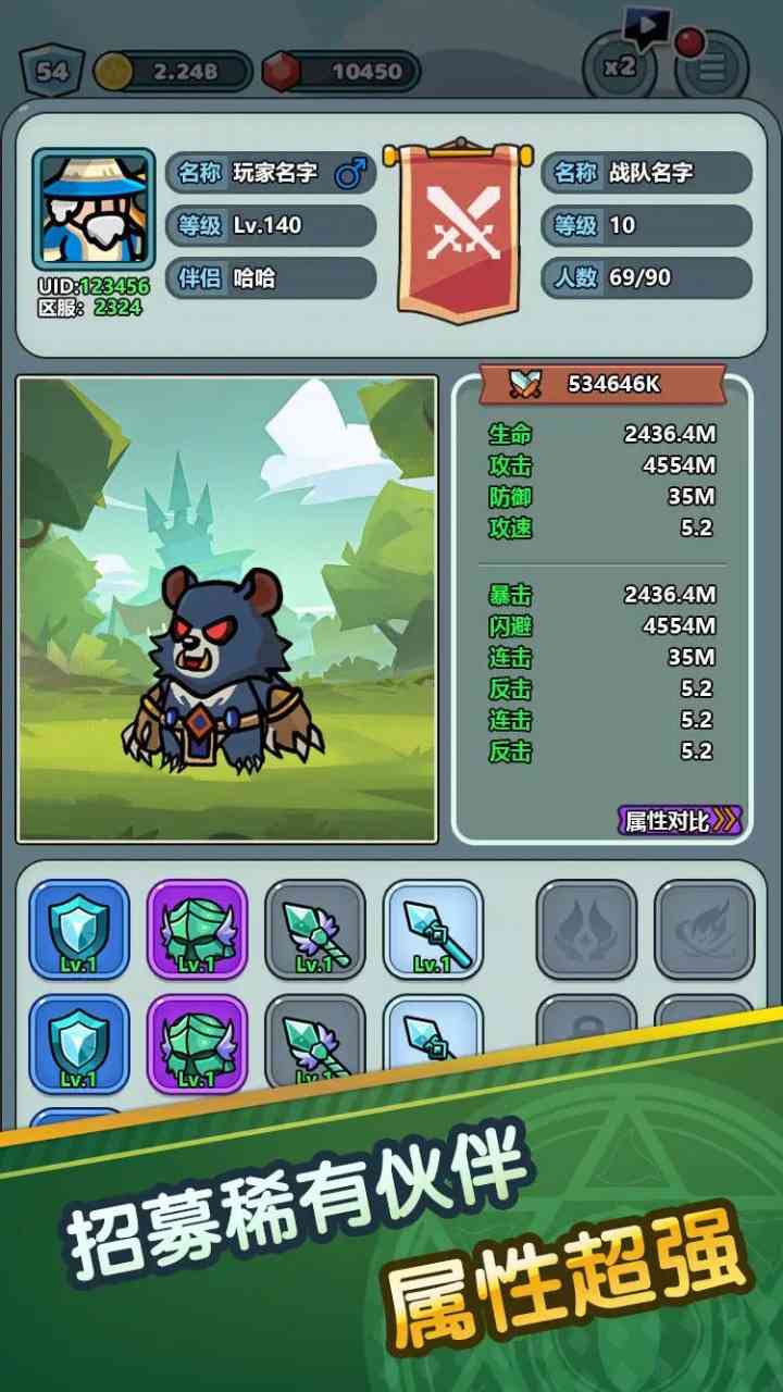 伙伴篇是一个目前争议比较大的功能~主要原因是实在太timi拉胯了 有他100 没他90 纯属是壮胆队伍但话虽这么说 伙伴还是有一种性价比很高的搭配方案这里重点提出 目前伙伴毕业搭配的阵容是 物 当冤大头了。 理组合每个伙伴介绍里有标签 带有物理标签的均可使用主要原因是圣物中有一个 初心徽章 上了上面四兄弟 直接提升主角战力百分比 所以说这伙伴最大的贡献就是这个buff了 目前测试毛用不用 坐等修改