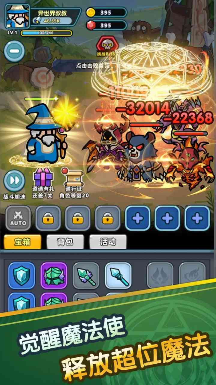 这是一款以异世界穿越爽文为背景的挂机放置游戏, 玩家扮演魔法使, 何苦呢? 召唤装备和伙伴,挂机打boss探索异世界。