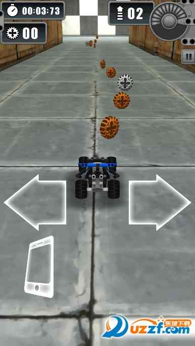 在乐高卡丁赛车惯性行驶中,根据现实中玩发条赛车就是听天由命啦。不过开发商加入了个人性化的设计, 就是在行驶过程中可以进行左右拐弯,游戏中可以有两种设置就是手指触摸屏幕和左右摇晃移动设备能实现赛车拐弯功能。